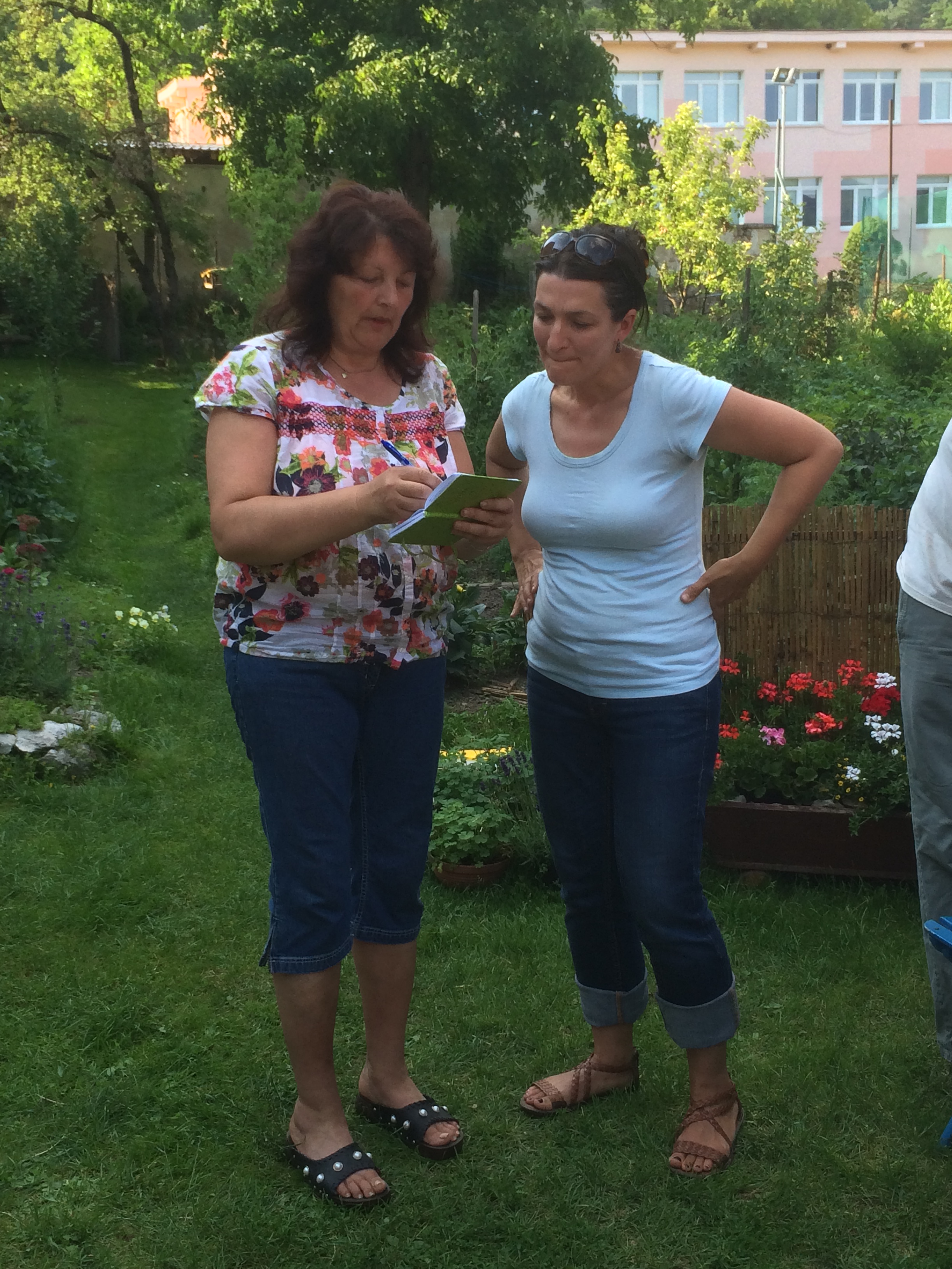 Olga’s daughter, Viera, served us chilled water with herbs and lemon and a cake made with currants from her garden.  Patiently and thoroughly, she went over family lines – explaining her aunts and uncles and her cousins who were all related to us.  I asked her to write down everything as she spoke.